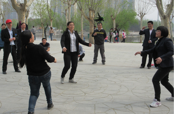 为丰富集团员工的文化生活,加强员工体育锻炼的意识,活跃春日气氛, 2015年4月11日下午14:30,海越集团员工在水上公园前广场开展了以“跳动的青春 蓬勃的海越”为主题的首届迎春活动。